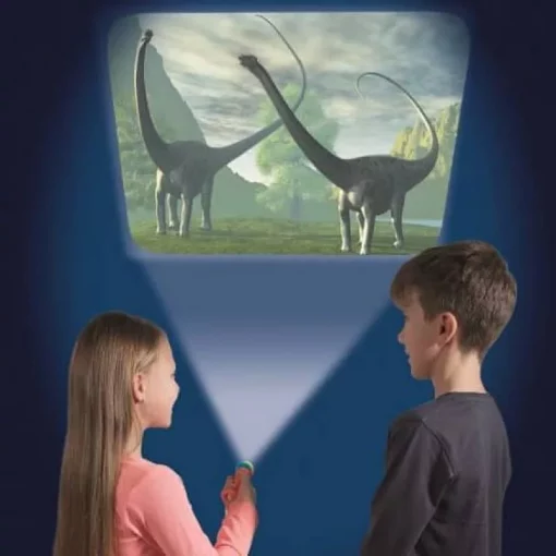 Δείτε εικόνες με εντυπωσιακούς δεινόσαυρους στους τοίχους του δωματίου σας! Ο φακός-προτζέκτορας περιλαμβάνει 3 δίσκους με 24 εικόνες από δεινόσαυρους.